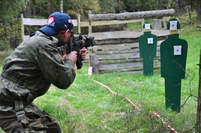 Strzelnica dynamiczna Strona główna › › Strzelnica dynamiczna Strzelnica dynamiczna Dynamiczne, czyli w ruchu. Co więcej – ze zmianą broni. Mając do dyspozycji dwa rodzaje pistoletów musimy strzelić do każdego z rozstawionych celów. Oczywiście posuwając się do przodu. Tylko uwaga, żeby nie zgubić broni! Galeria: